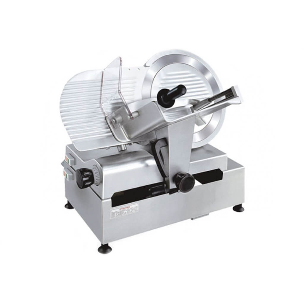 Affettatrice Automatica professionale studiata per tagliare salumi, formaggi, pane e pesce. Il meccanismo d’avanzamento automatico è azionato da una levetta sotto il supporto piatto, che permette all’operatore di decidere se comandare l’affettatrice anche manualmente