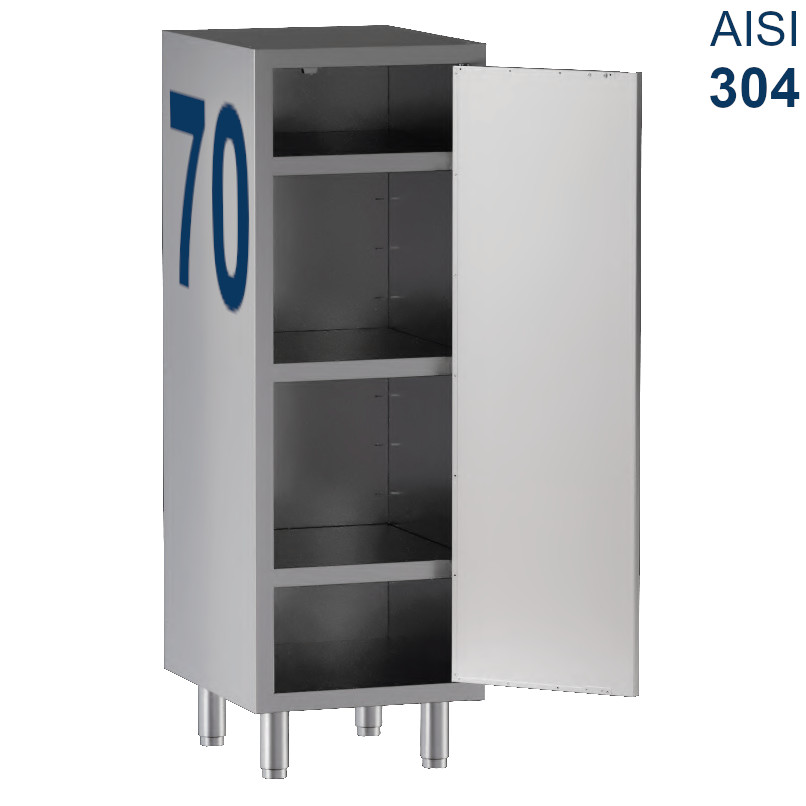 Armadietto in acciaio inox Aisi 304, con 1 porta battente e 3 ripiani.