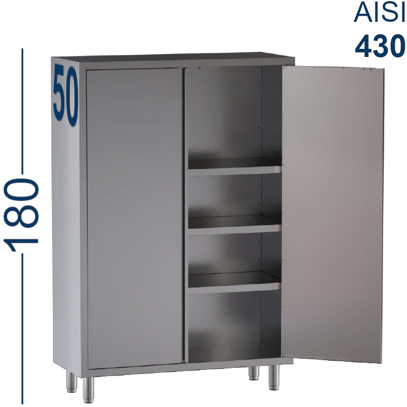 Armadio 2 porte battenti 3 ripiani altezza 180 cm profondità 50 cm acciaio inox Aisi 430