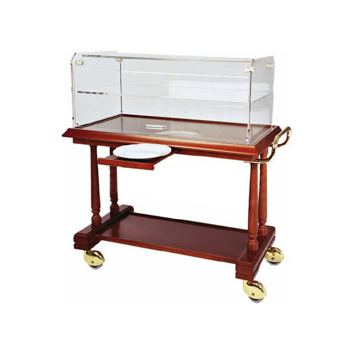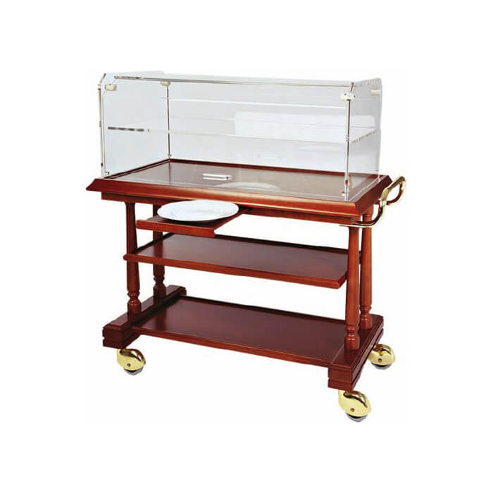 Carrello di servizio legno 2 o 3 piani coperchio plexiglass piano intermedio 113x56x120 cm Forcar LDF 434/435