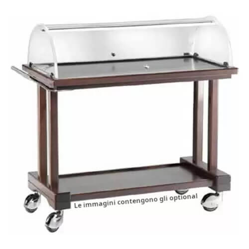 Carrello di servizio legno 2 ripiani coperchio semicircolare plexiglass 81x55x108 cm Forcar