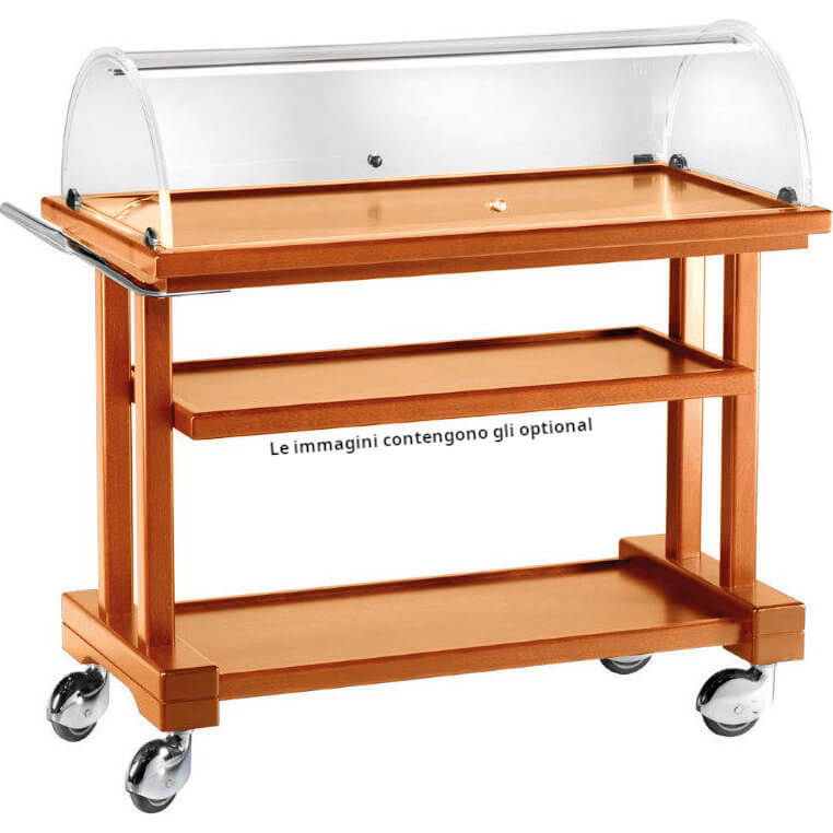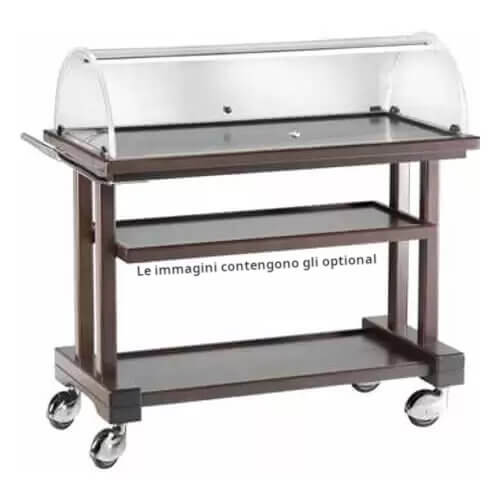 Carrello di servizio legno 3 piani coperchio semicircolare plexiglass 81x55x108 cm Forcar