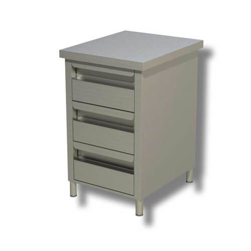 Cassettiera 3 cassetti acciaio inox Aisi 430 lunghezza 50 cm