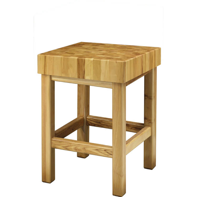 Ceppo in legno di acacia e sgabello. Ceppo trattato con vernice atossica e collanti ecologici (conformi alle norme vigenti) assemblato con innesti a pressione e internamente con inserti speciali in legno