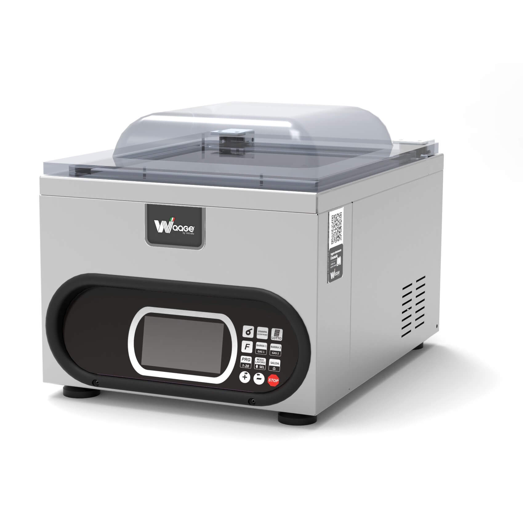 Realizzate in acciaio Inox, pannello comandi LCD 5 pollici 20 programmi memorizzabili, barre saldanti removibili senza fili per una maggiore pulizia, campana in plexiglass trasparente, ripiani di riempimento della vasca in polietilene alimentare, permette di creare il vuoto per tutte le tipologie di prodotto.
