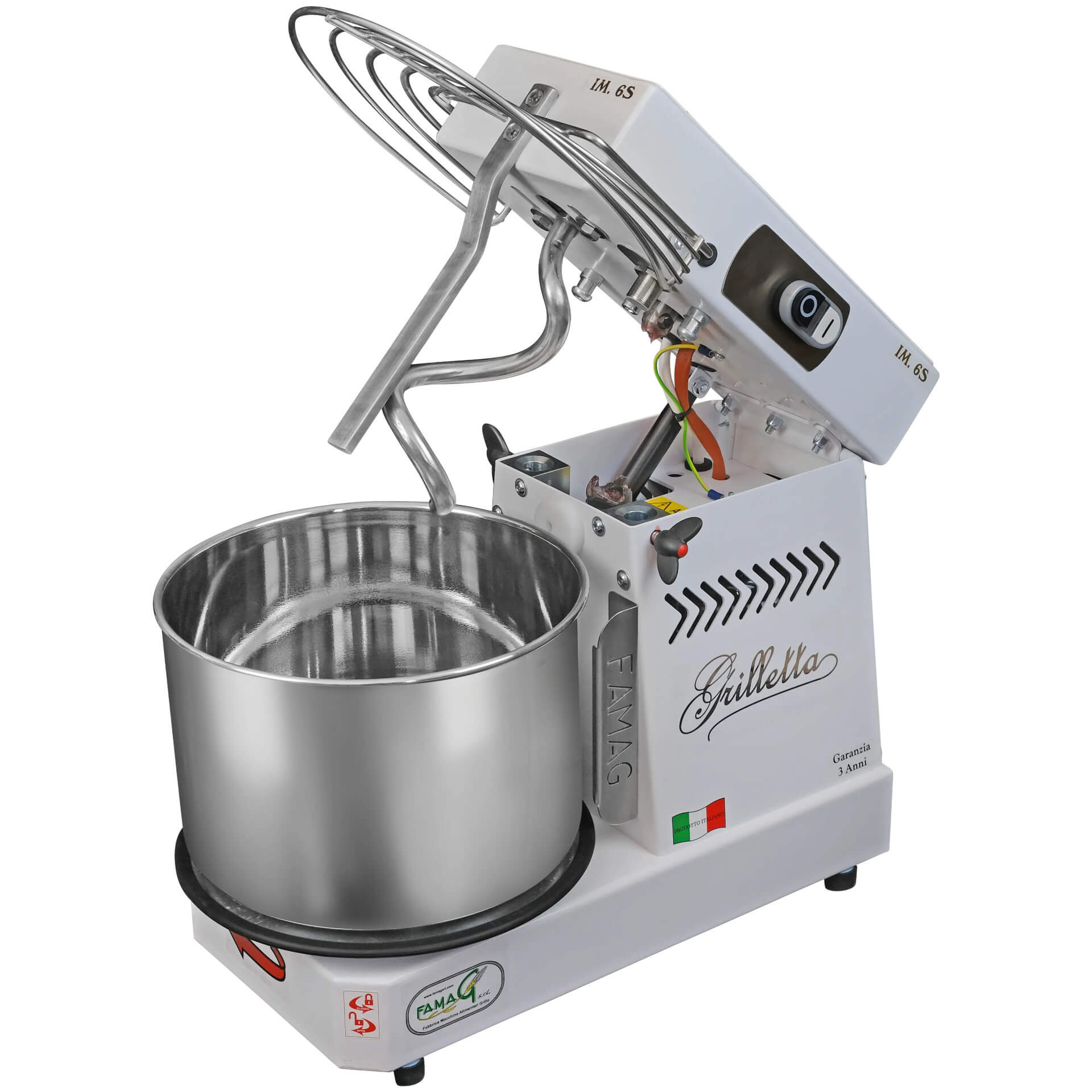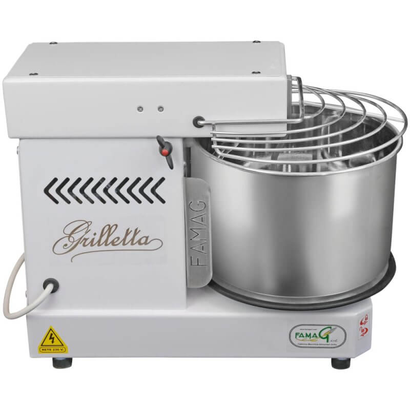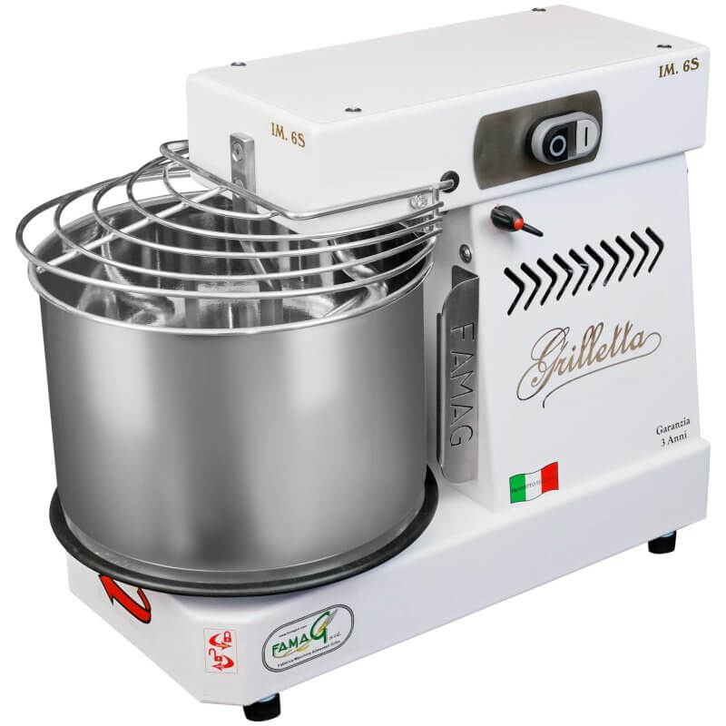 Die Grilletta IM6S gehört zu den kleinsten im Handel erhältlichen Spiralknetern mit kippbarem Kopf. Durch den kippbaren Kopf kann der Teig sehr leicht herausgezogen werden. Dank der abnehmbaren Schüssel kann der Teig direkt in der Schüssel der Grilletta ruhen. Dank des kippbaren Kopfes und der abnehmbaren Schüssel ist die Grilletta noch einfacher zu reinigen und die Schüssel kann in die Spülmaschine gestellt werden. Trotz ihrer extrem geringen Größe ist die Grilletta leistungsstark und innovativ. Dank ihrer extrem ausgereiften und zuverlässigen Mechanik ist die Maschine leise, verbraucht wenig Energie und erfordert keine Wartung. Perfekt für die Herstellung aller Arten von Teig wie Pizza, Brot, frische und Eierteigwaren, Kekse und mehr. Sie ist für den Hobbygebrauch konzipiert und eignet sich auch perfekt für kleine Teige in Pizzerien, Bars, Restaurants und Bäckereien, wenn z. B. glutenfreier Teig angeboten wird und eine spezielle Ausrüstung benötigt wird.