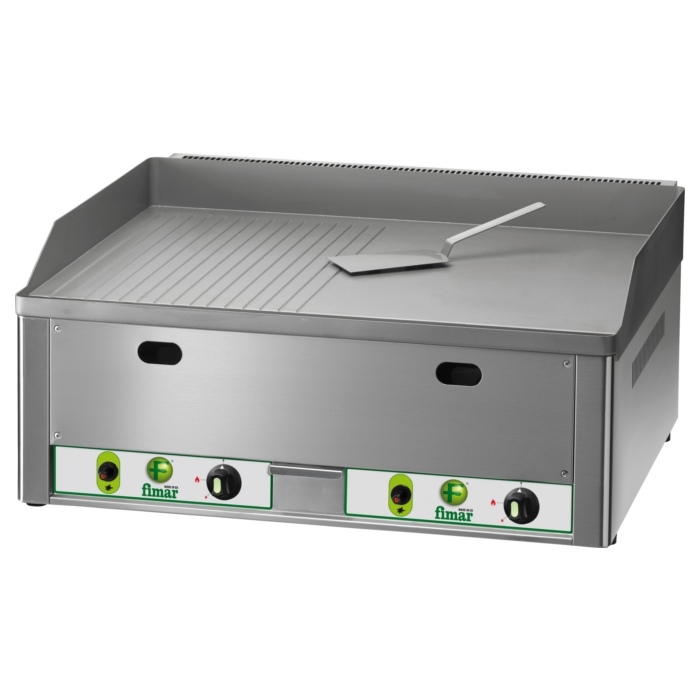 Fritierplatte Gas doppelt glatt und gerippt Stahl 66,5x60x30 cm Fimar FRY2LRM und FRY2LRMC