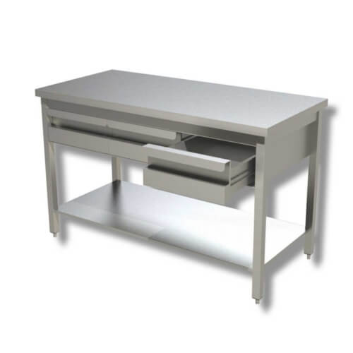 Offener Tisch Stahl Aisi 304 mit Schubladen untere Ablage Tiefe 70 cm