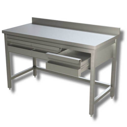 Offener Tisch Stahl Aisi 430 mit Schubladen mit Aufkantung Tiefe 70 cm