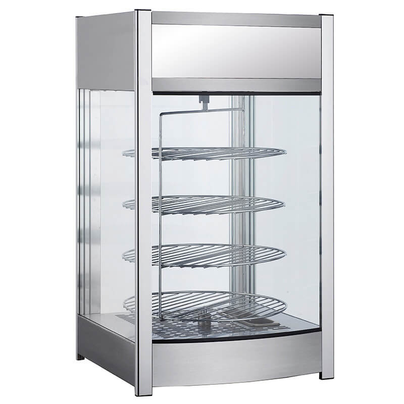 Beheizte Edelstahl-Vitrine 4 runde drehbare Einlegeböden +30+90/°C 46x45x78,5 cm Forcar RTR97L2