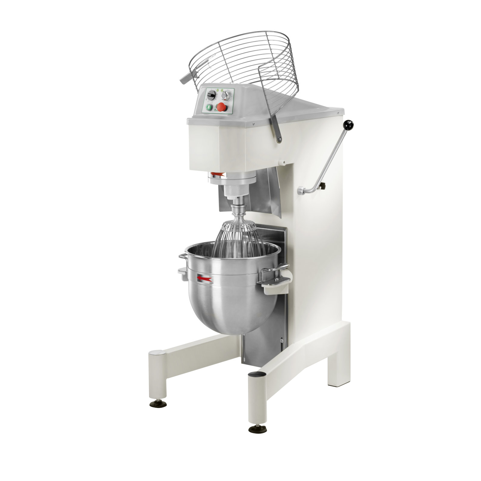 Planetenmischer mit Inverter-Drehzahlregler und mechanischer Steuerung. Maschine für verschiedene Teigsorten wie Pizza, Brot, Kekse, Croissants, Brioches, Beignets, Biskuit, Mürbeteig, Meringues, Pürees, verschiedene Soßen, Schlagsahne, etc.