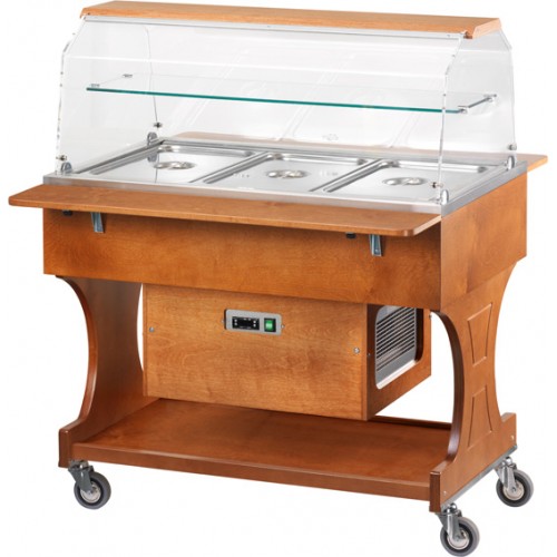 Holz-Kühlwagen Plexiglas-Kuppel 3 GN 1/1 +2/+10°C 111x82x134 cm Forcar CLR 2782: