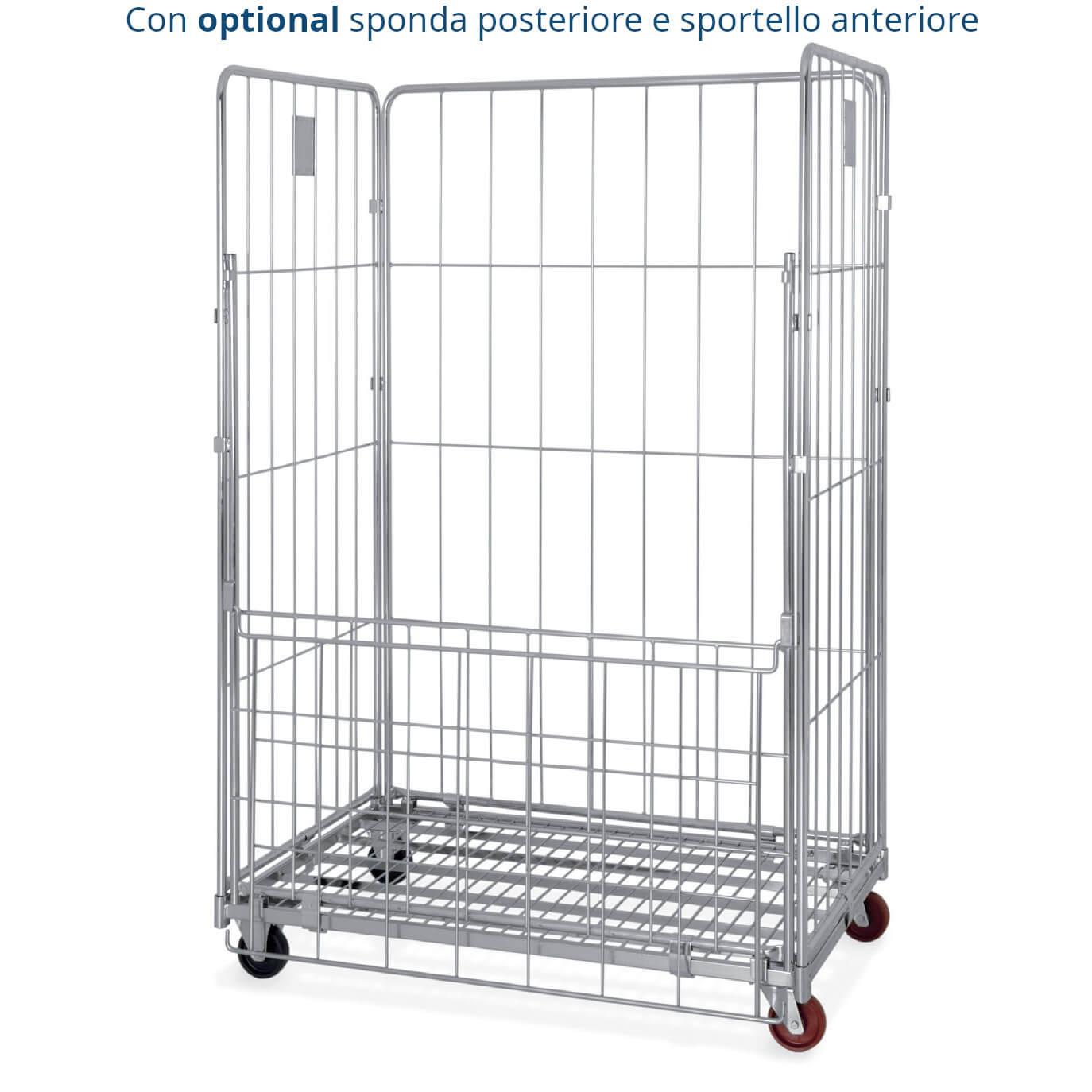 Il carrello roll container è composto da una base 120×80 su 4 ruote e due sponde laterali incluso cinghia