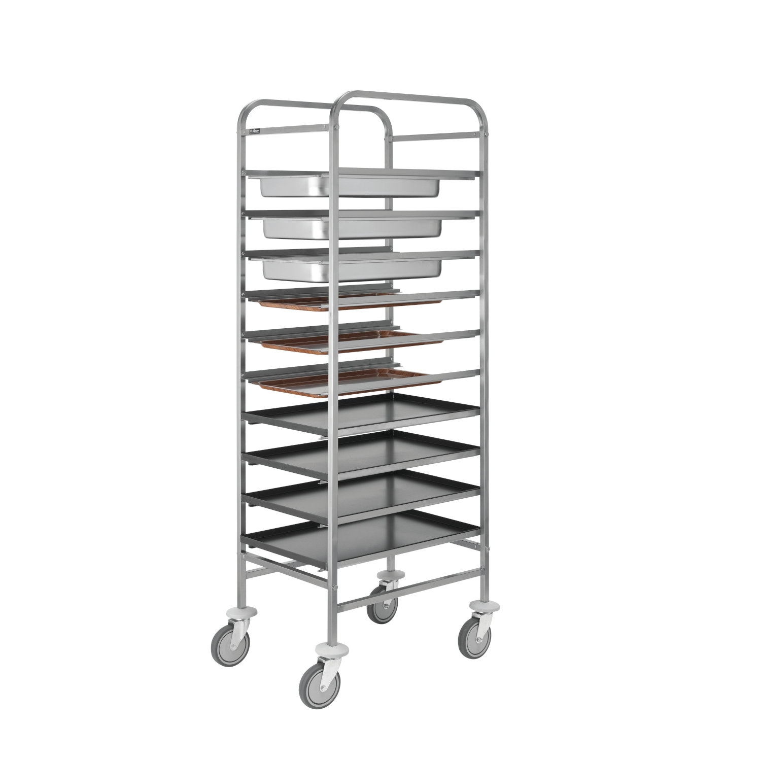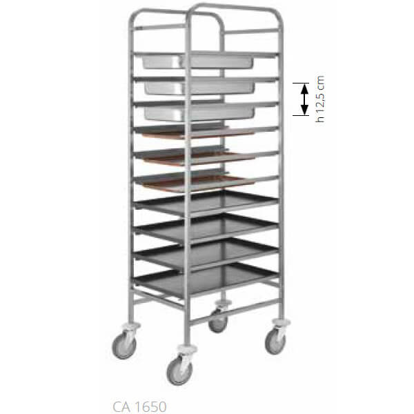 Tablett- und Pfannenwagen aus Edelstahl 10 Tabletts 60×40 oder GN1/1 51,5x67x175 cm Forcar CA 1650