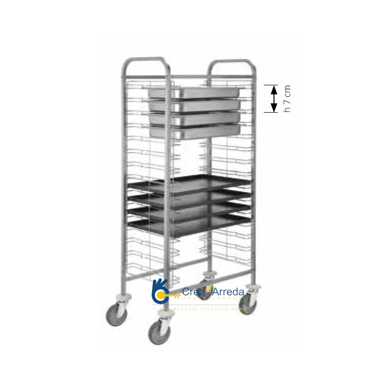 Carrello Portateglie e Bacinelle Acciaio Inox 15 Teglie 60×40 o GN1/1 67x46x153cm Forcar