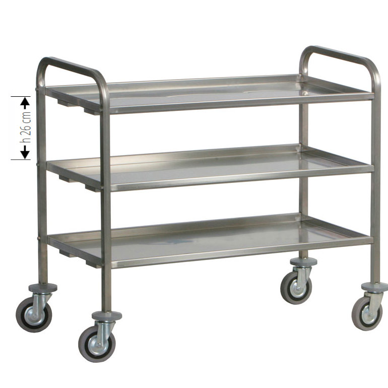 Schwerer Transportwagen aus Edelstahl 25×25 3 Etagen 92/112x67x98 cm Für Auto CA1394P und CA1395P