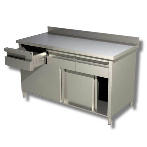 Schranktisch mit Schiebetüren und Schubladen Stahl Aisi 430 Tiefe 70 cm