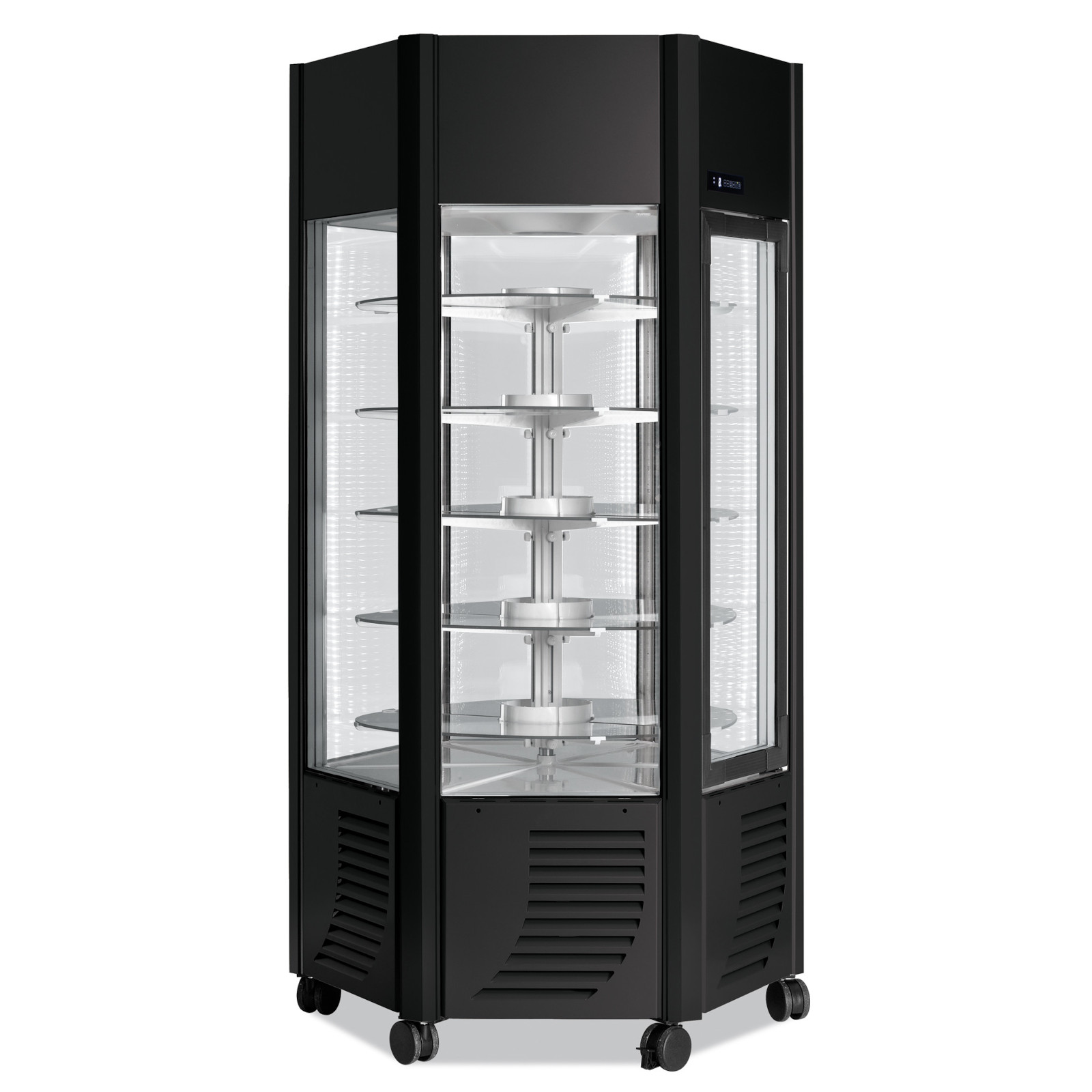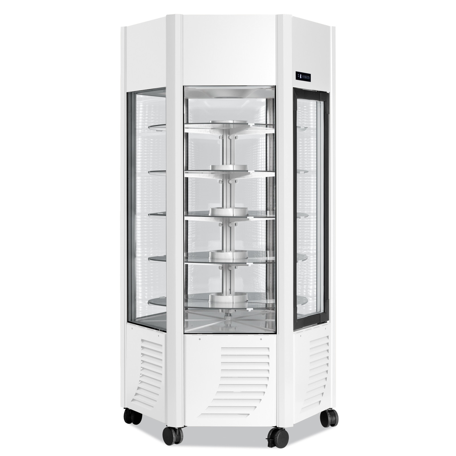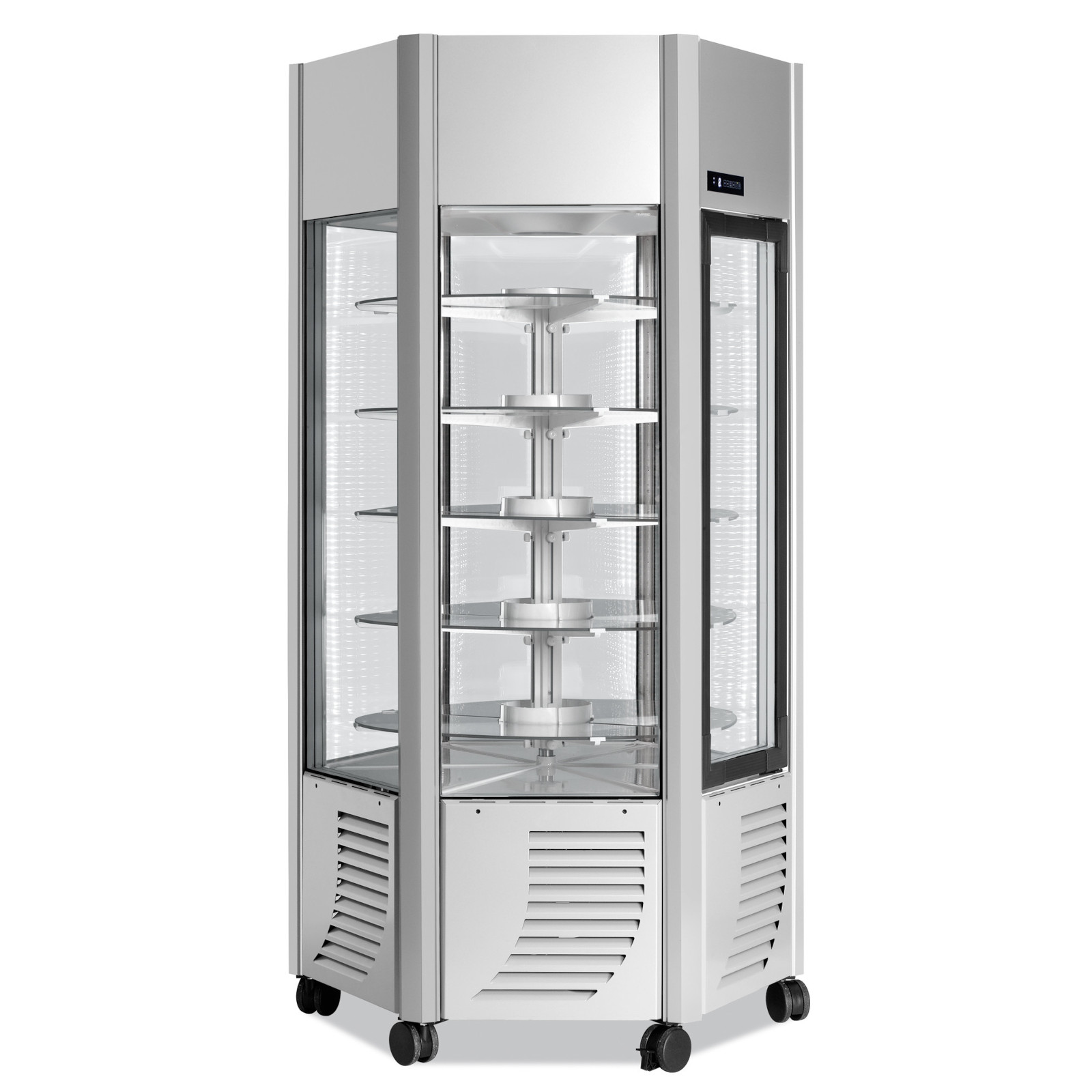 Seine sechseckige Form ist mit 6 doppelt verglasten Scheiben und 5 runden Ablagen für eine optimale und elegante Präsentation ausgestattet. In der Ästhetik überarbeitet, liefert Scaiola seine Produkte in 3 verschiedenen Standardfarben und es ist möglich, optional bis zu 200 RAL-Farben zu wählen