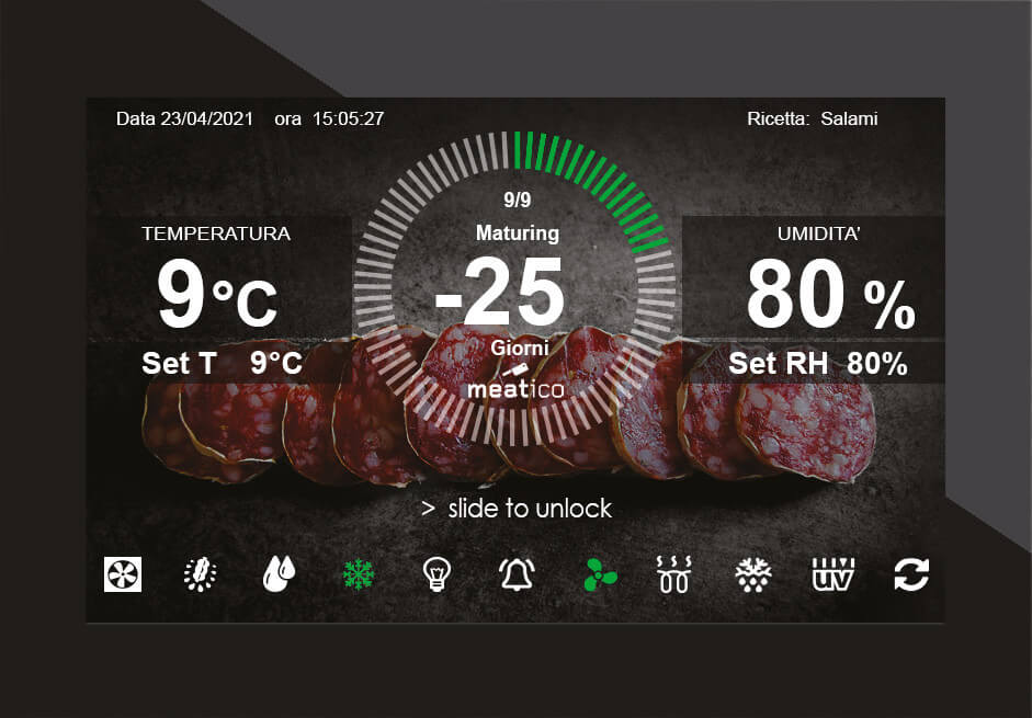 - STANDARDMÄSSIGE FERNVERBINDUNG: meatico verbindet sich automatisch über das Wi-Fi-Netzwerk mit der Cloud und ermöglicht die Fernverwaltung des Schrankbetriebs und der Parameter über die App