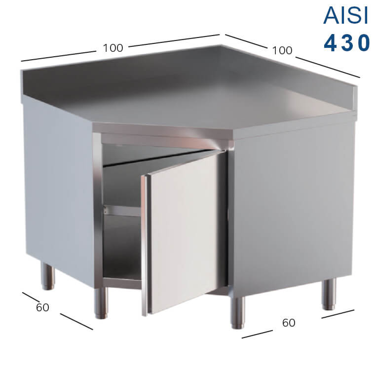 Eckschranktisch mit Flügeltür und Spritzwand Aisi 430 Stahl 60 cm tief