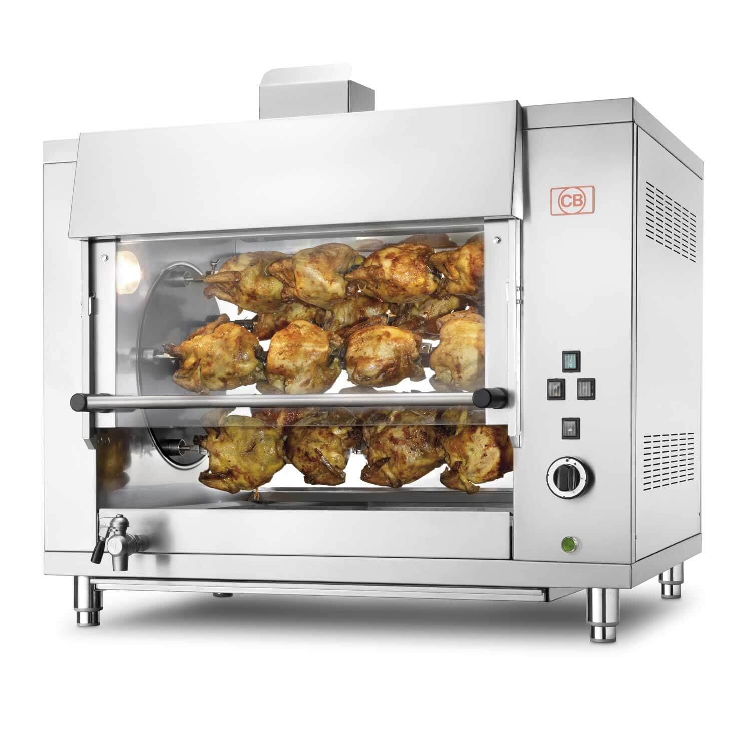 Girarrosto planetario a gas per 20 polli e con 5 aste. Ideale per rosticcerie, supermercati, ristoranti e molto altro.