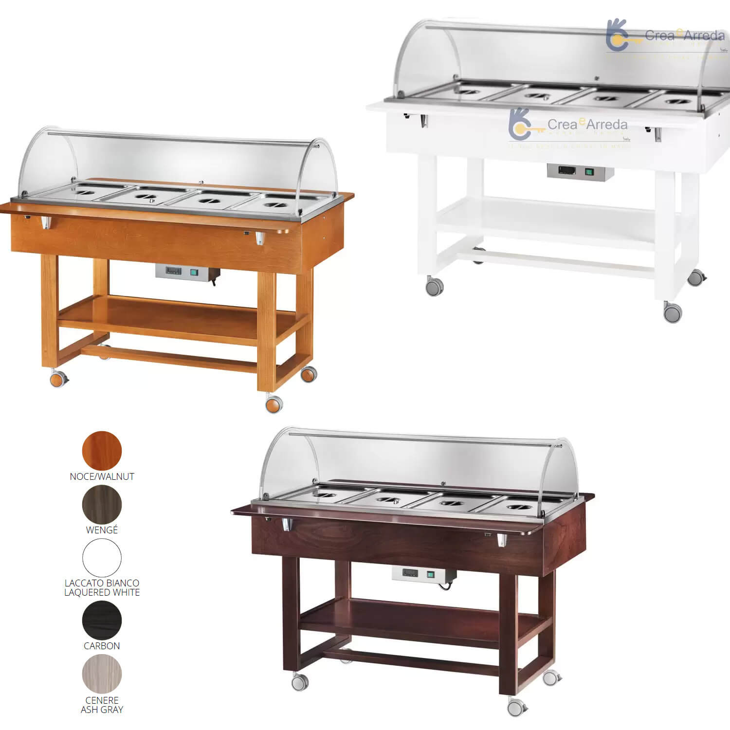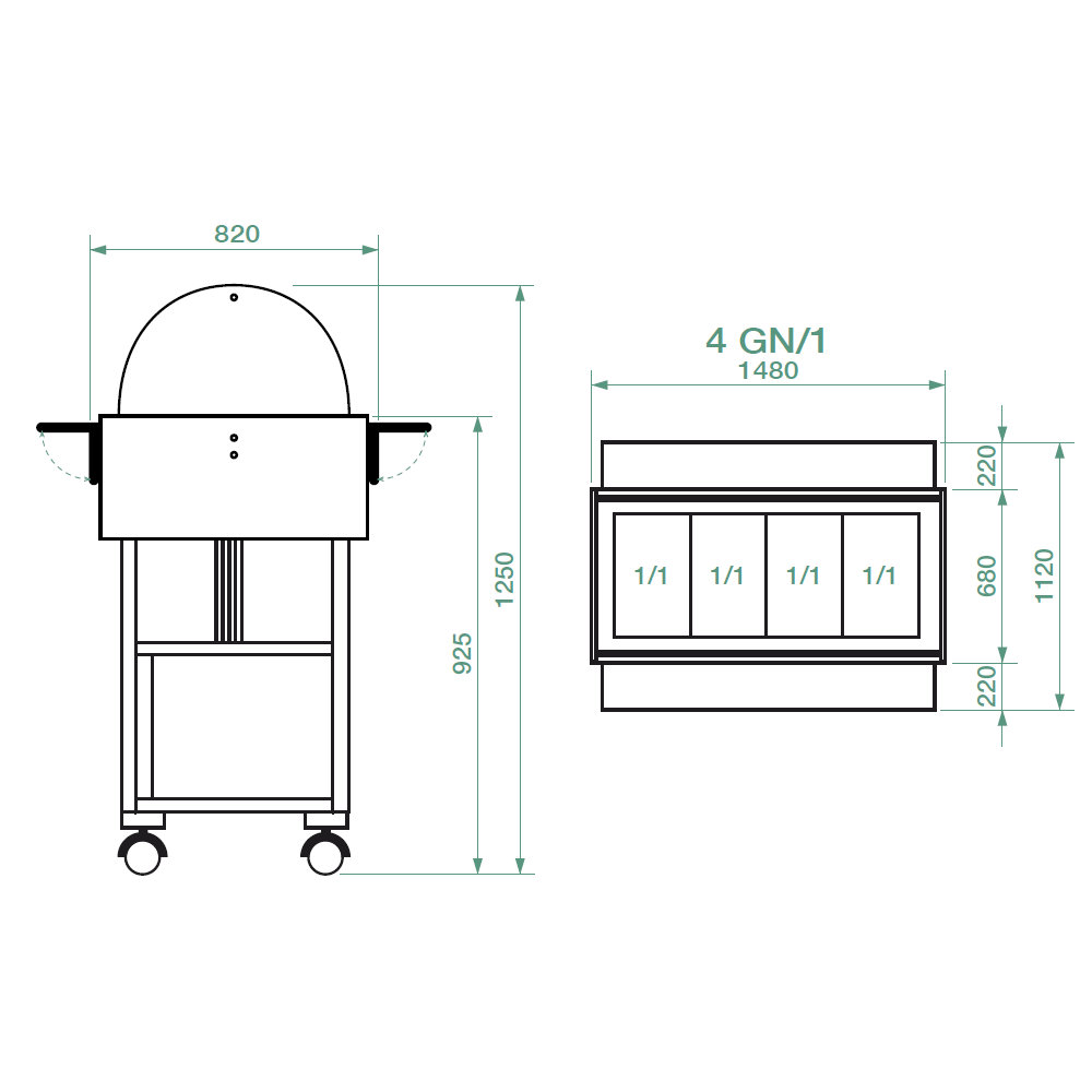 Bain-Marie-Wagen aus Holz +30/+90°C 4 GN 1/1 148x82x125 cm Forcar