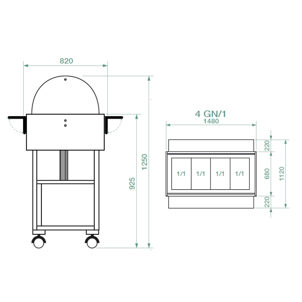 Kühlregalwagen Holzkuppel Plexiglas +2/+10°C 4GN 1/1 Forcar ELR 2827