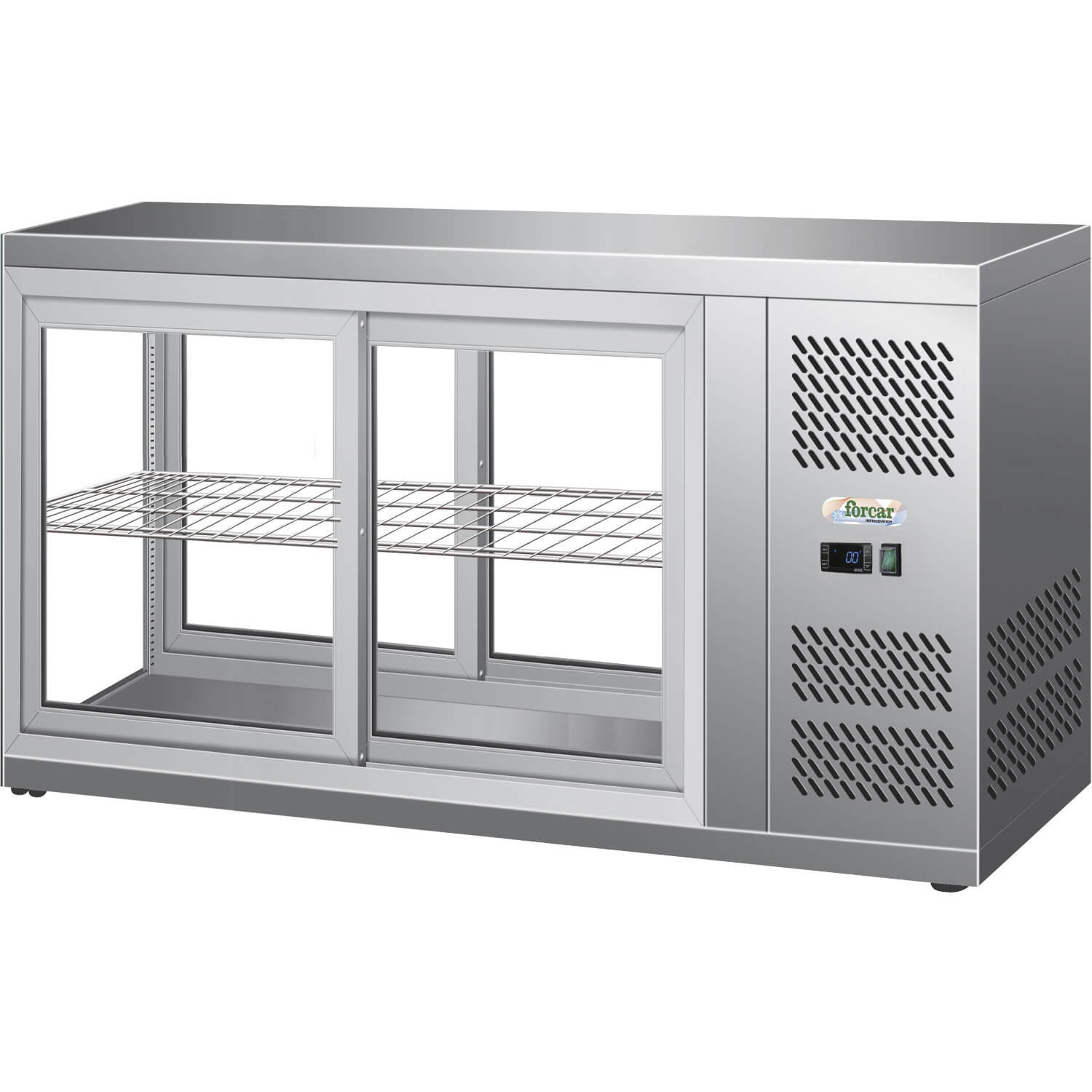 Gekühlte Edelstahl-Thekenvitrine mit Schiebegläsern 190 Lt forcar