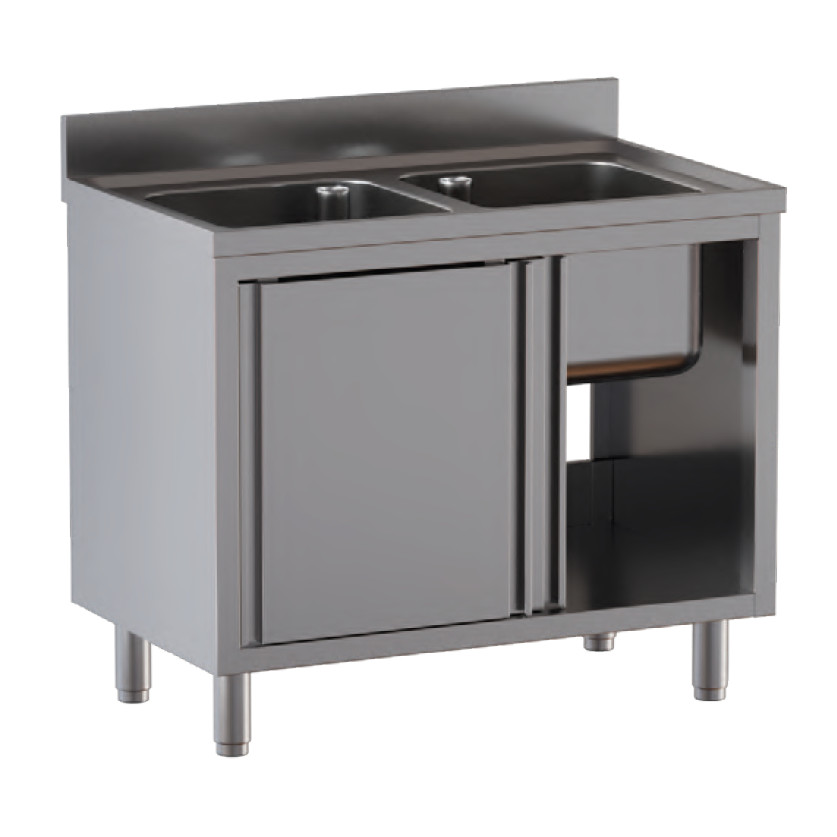 Professionelle 2-Kammer-Schrankspüle mit Schiebetüren aus Edelstahl