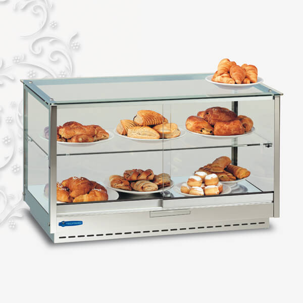 Linus ist ein kleines Thekendisplay mit einem Rahmen aus stranggepresstem, eloxiertem und hochglanzpoliertem Aluminium und Außenplatten aus rostfreier Stahl Glatt-Bearbeitung.