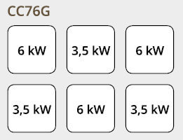 - Gusseisenbrenner, 3 x 3,5 und 3 x 6 kW mit Sicherheitsthermoelement und elektrischer Zündung.