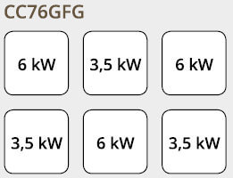 - Gusseisenbrenner 3 x 3,5 und 3 x 6 kW mit Sicherheitsthermoelement und elektrischer Zündung.