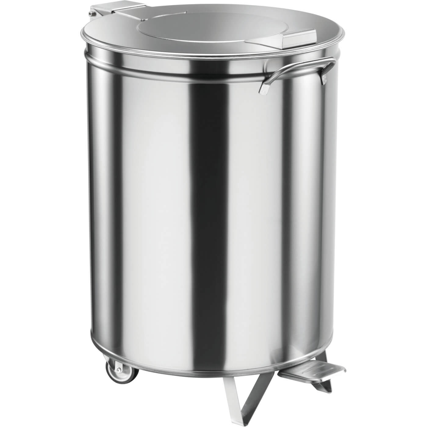 Pedalbetriebene Abfallbehälter auf Rädern aus Edelstahl