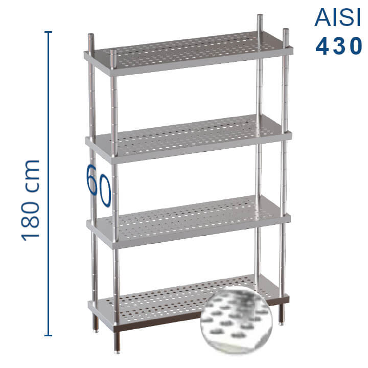 Regalschrank aus Edelstahl Aisi 430, mit 60 cm tiefen Lochblechböden