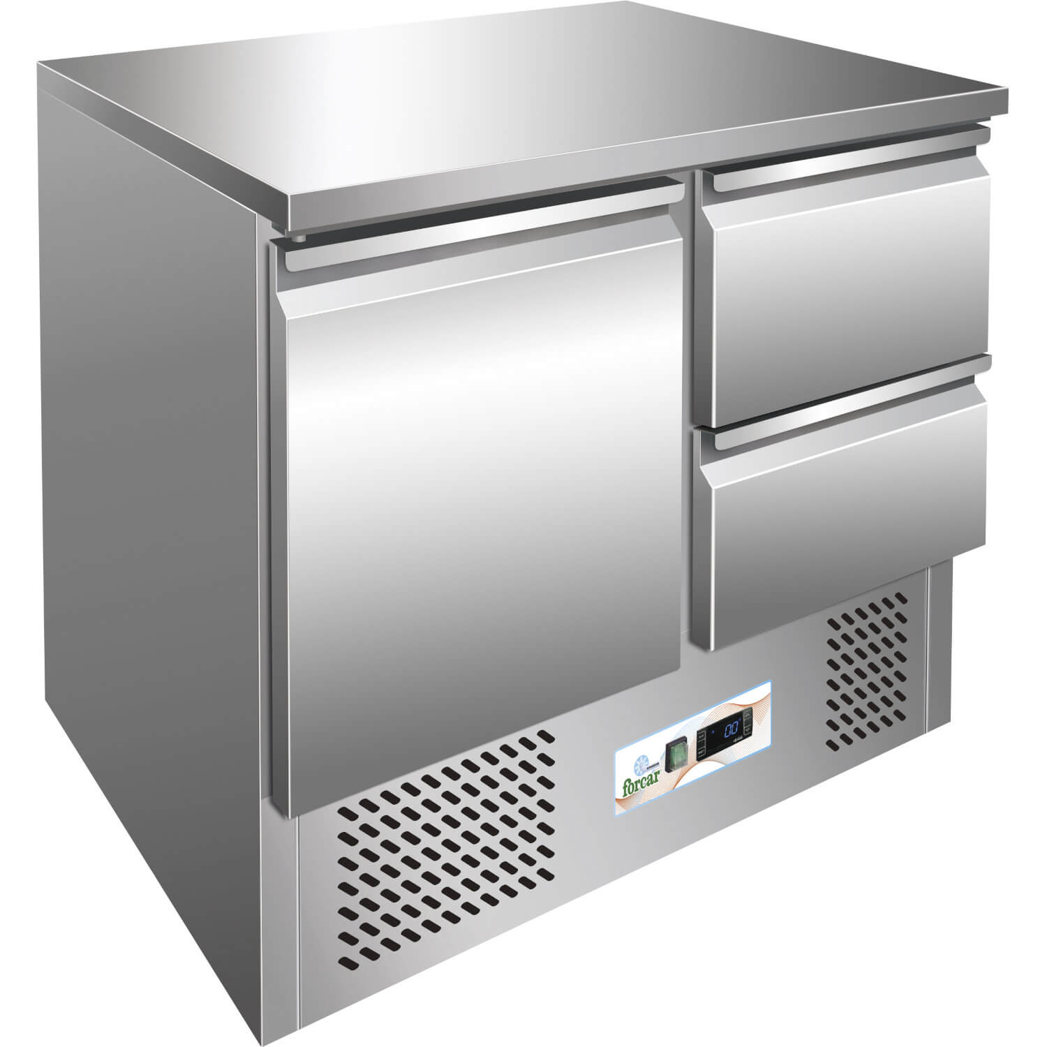 Gekühlte statische Edelstahlplatte 1 Tür 2 Schubladen +2°C/+8°C Forcar G-S9012D