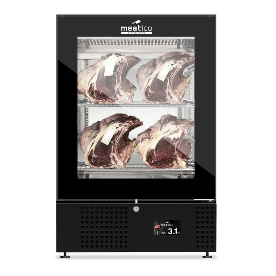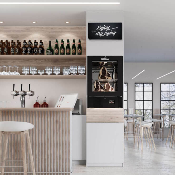 MEAT150 ist das ideale Gerät für alle, die sich ausschließlich der sicheren und professionellen Reifung von Fleisch widmen wollen. Immer mehr Restaurants und Metzgereien entscheiden sich heute dafür, die Reifung und Reifung ihrer Fleischstücke direkt zu überwachen, um ihren Kunden ein einzigartiges, hochwertiges Produkt anzubieten. Meatico schafft dank fortschrittlicher Technologie und der langjährigen Erfahrung unseres Unternehmens in der professionellen Kühlung eine sichere und kontrollierte Reifeumgebung. Das elegante Design und die Liebe zum Detail machen diese Produkte besonders geeignet für die Präsentation im Raum, damit die Kunden den Reifungsprozess Schritt für Schritt verfolgen können.