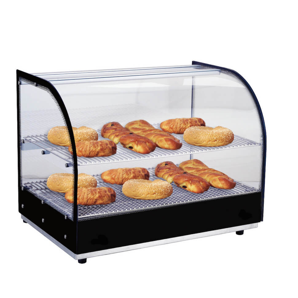 Warme Thekenvitrine 2 Böden gebogenes Hartglas DHN 500