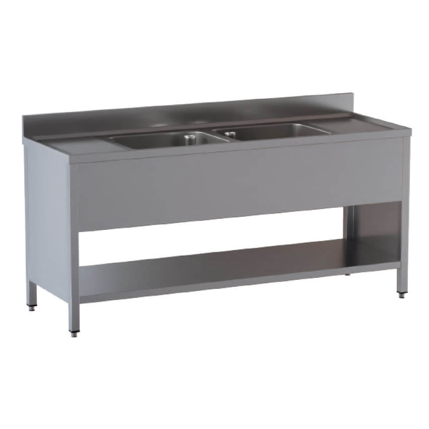 Waschtisch 2 Becken 2 seitliche Abtropfschalen Edelstahl Aisi 430 Tiefe 60 cm