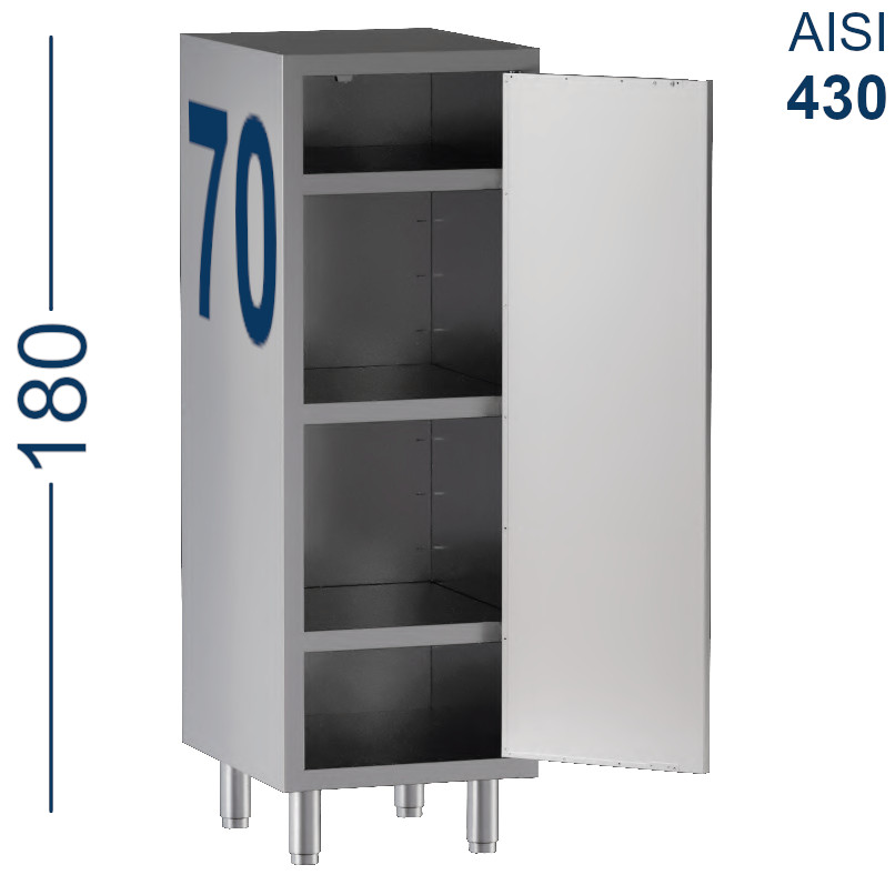 Cabinet 1 hinged door 3 shelves height 180 cm depth 70 cm stainless steel Aisi 430