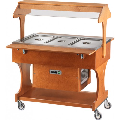 Wooden refrigerated trolley plexiglass dome 3 GN 1/1 +2/+10°C 82x111x142 cm Forcar CLR 2786:
