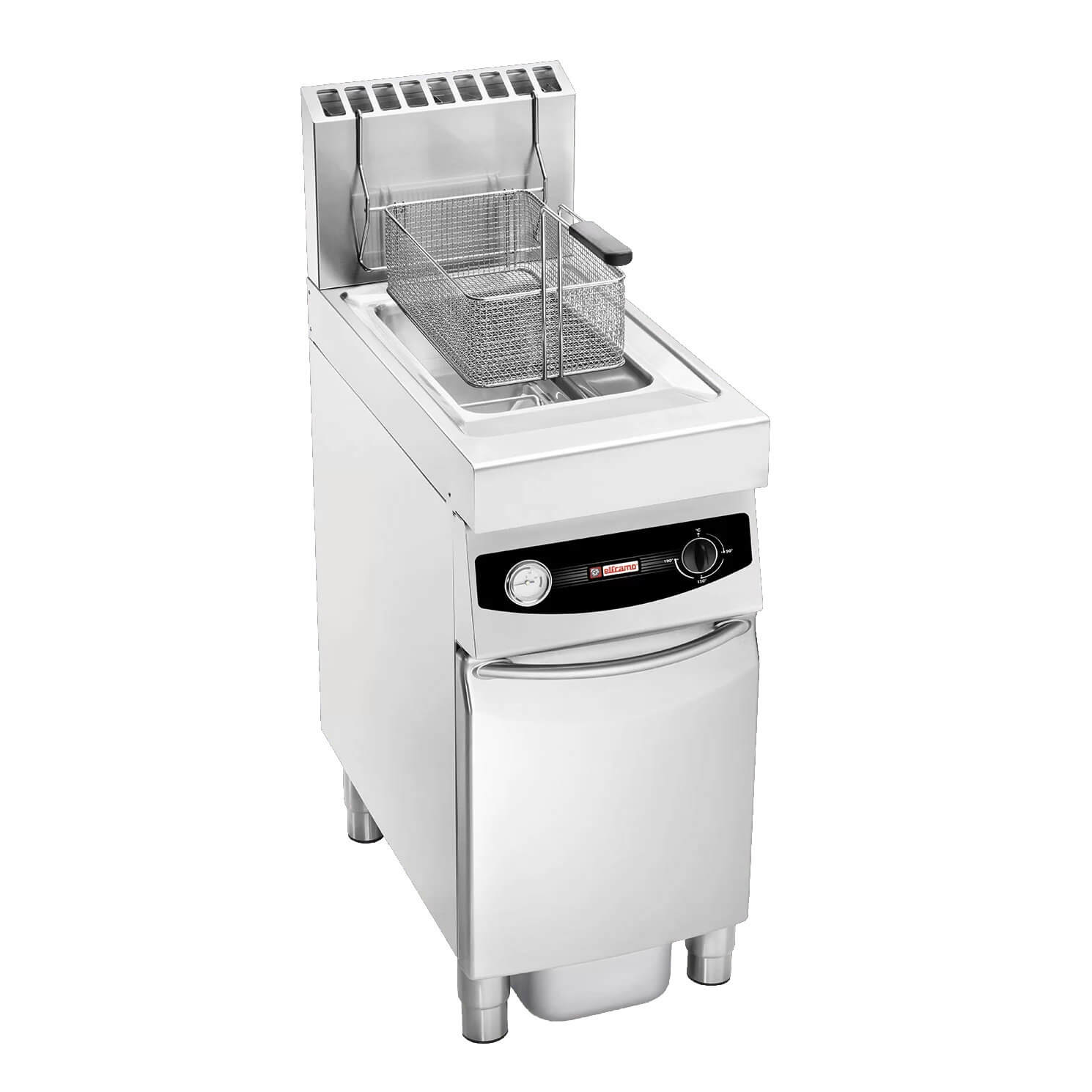 Gas fryer 17 lt depth 70 cm on cabinet deep-drawn tub Elframo