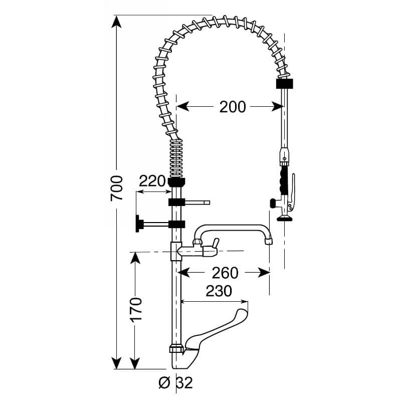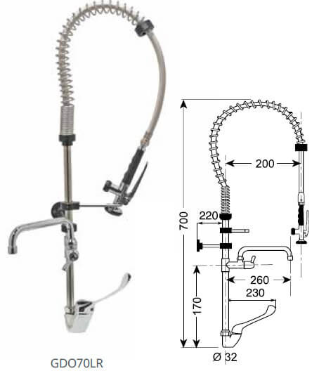 Gruppo Doccia con Miscelatore Rubinetto e Leva Altezza 70 Cm