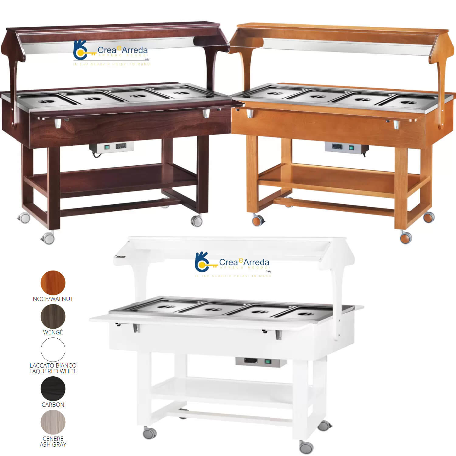 Wooden bain-marie display trolley open +30/+90°C 4 GN 1/1 148x82x141 cm Forcar ELC 2828