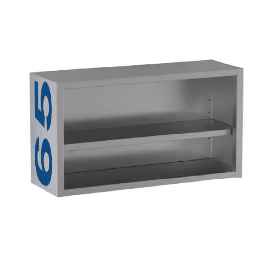 Open wall cabinet, with 1 repositionable shelf, made of Aisi 430 stainless steel.