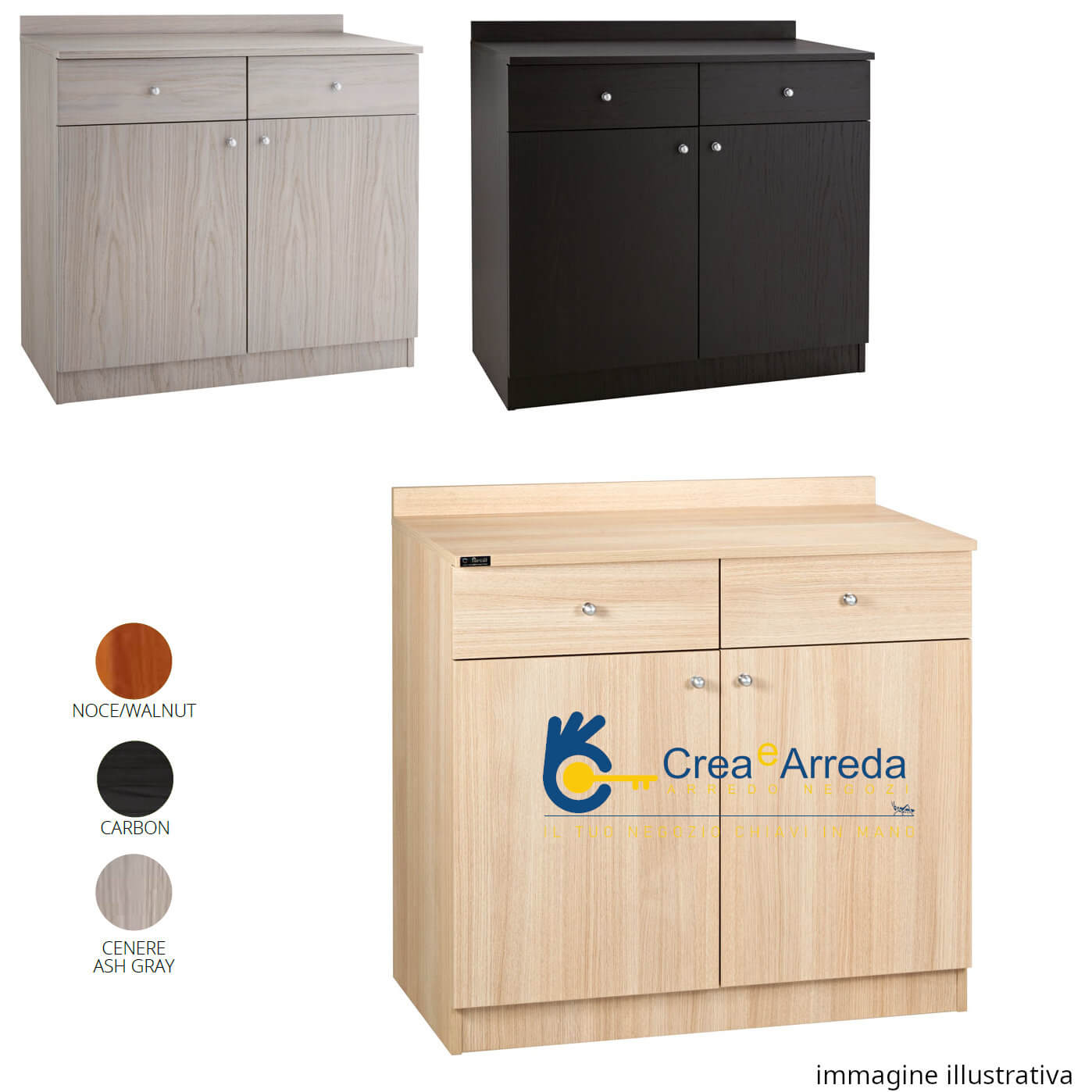 Low Professional Service Cabinet with Wheels 2 Doors 2 Drawers Cutlery Tray 90x48x95 cm Forcar ML3202SS