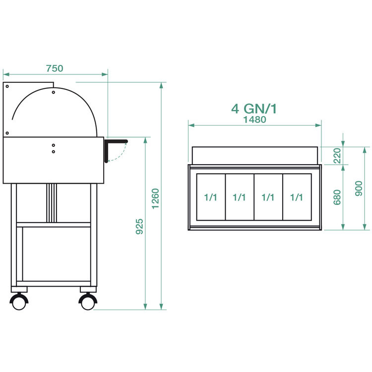 Professional Refrigerated Cart Wood Dome Plexiglass -5/+5°C 3GN 1/1 Forcar CLR 2787NBT