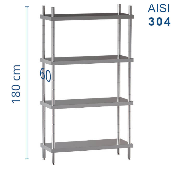 Stainless steel shelf height 180 cm smooth shelves depth 60 cm steel Aisi 304
