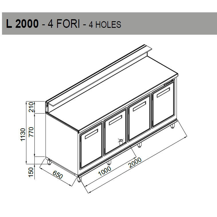 All bar counters are equipped with the following technical features: