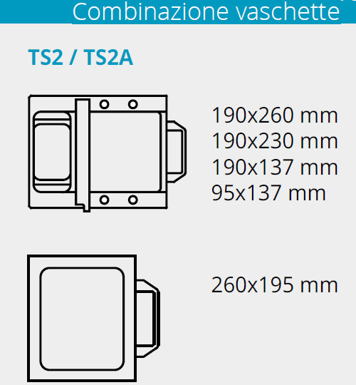 - Trays available upon request. Combination trays -190×260 mm - 190×230 mm - 190×137 mm - 95×137 mm - 260×195 mm.