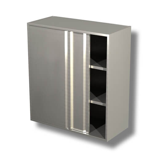 Wall cabinet with sliding doors with 2 shelves made of Aisi 304 stainless steel.